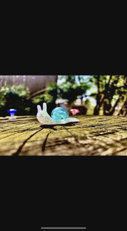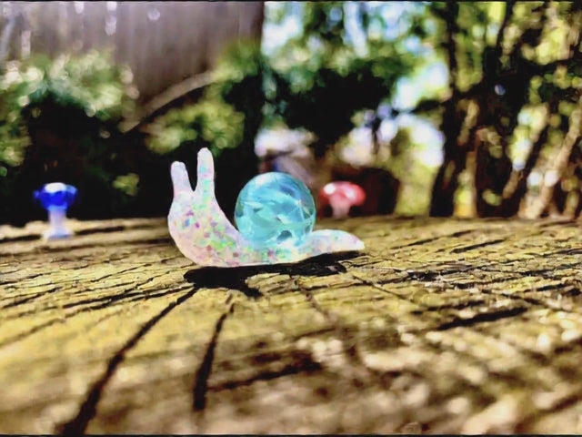 Iridescent clear with blue and white swirls 16mm glass marble